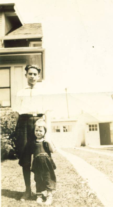 Charlie Neubaum with his Mother in back of their house at 669 2nd Street in Enhaut |
